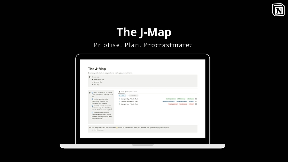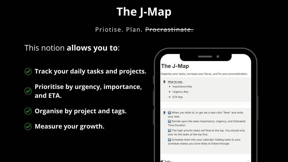 - Reduced procrastination: The J-Map helps you to break down large tasks into smaller, more manageable steps, which can make them seem less daunting.