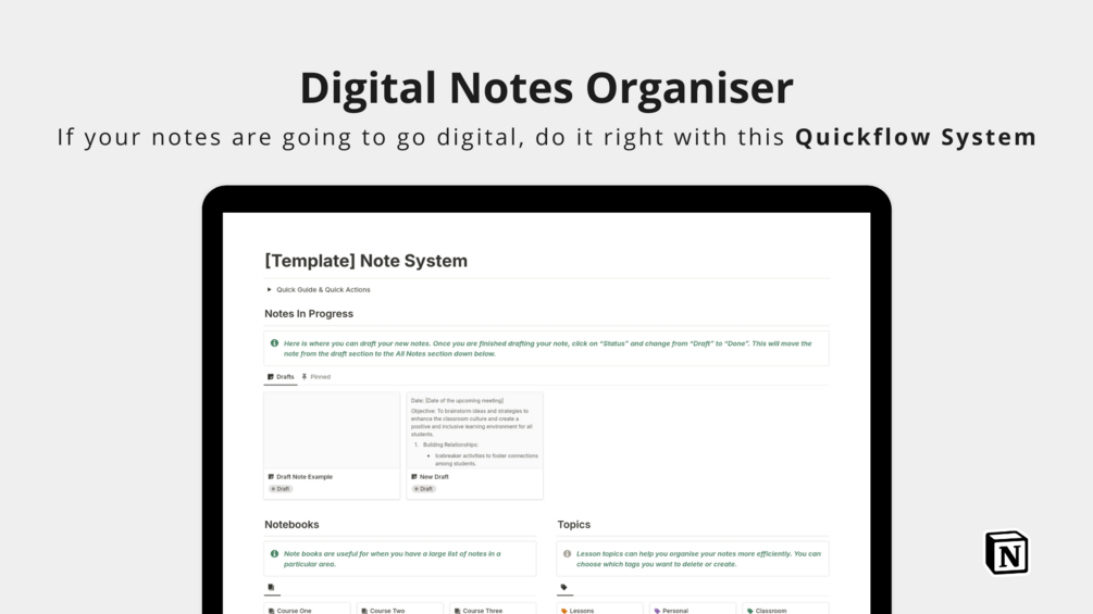 Custom Notebooks: Group related notes together, whether by subject, project, or any other desired criteria.